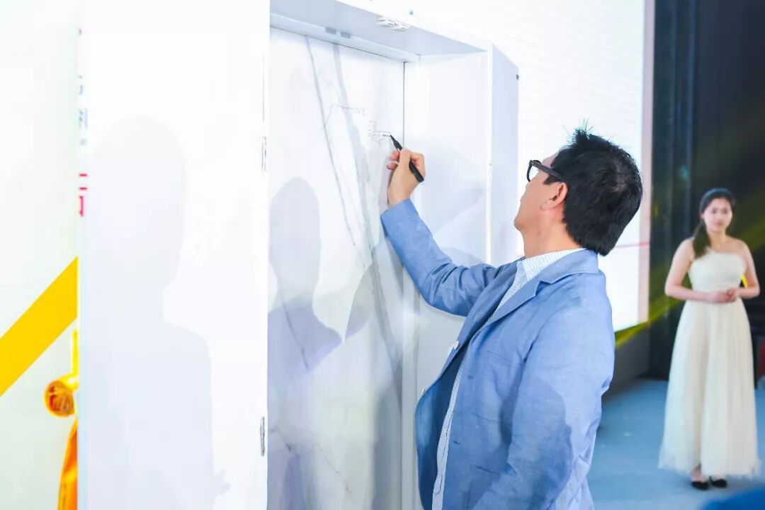 梁志天先生和琚賓先生在新品上簽名留念,這標志著唯美L&D陶瓷2018年度新品的正式起航。