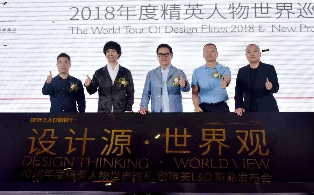 本次活動邀請梁志天先生、琚賓先生、唯美集團常務副總裁謝悅增先生(右二)、唯美L&D陶瓷事業部總經理蘭盛標先生(左一)、廣州設計周執行總監賀文廣先生(右一)上臺,共同完成了“‘設計源·世界觀’2018年度精英人物世界巡禮”的啟動儀式。